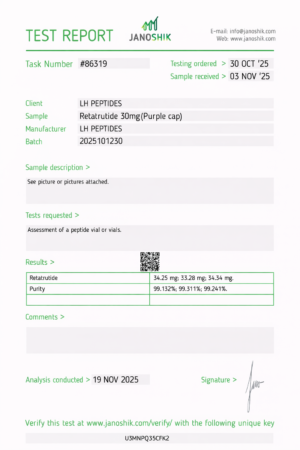 We don’t guess. Every batch is analyzed for identity and purity, and we publish results—no hidden data, no shortcuts.