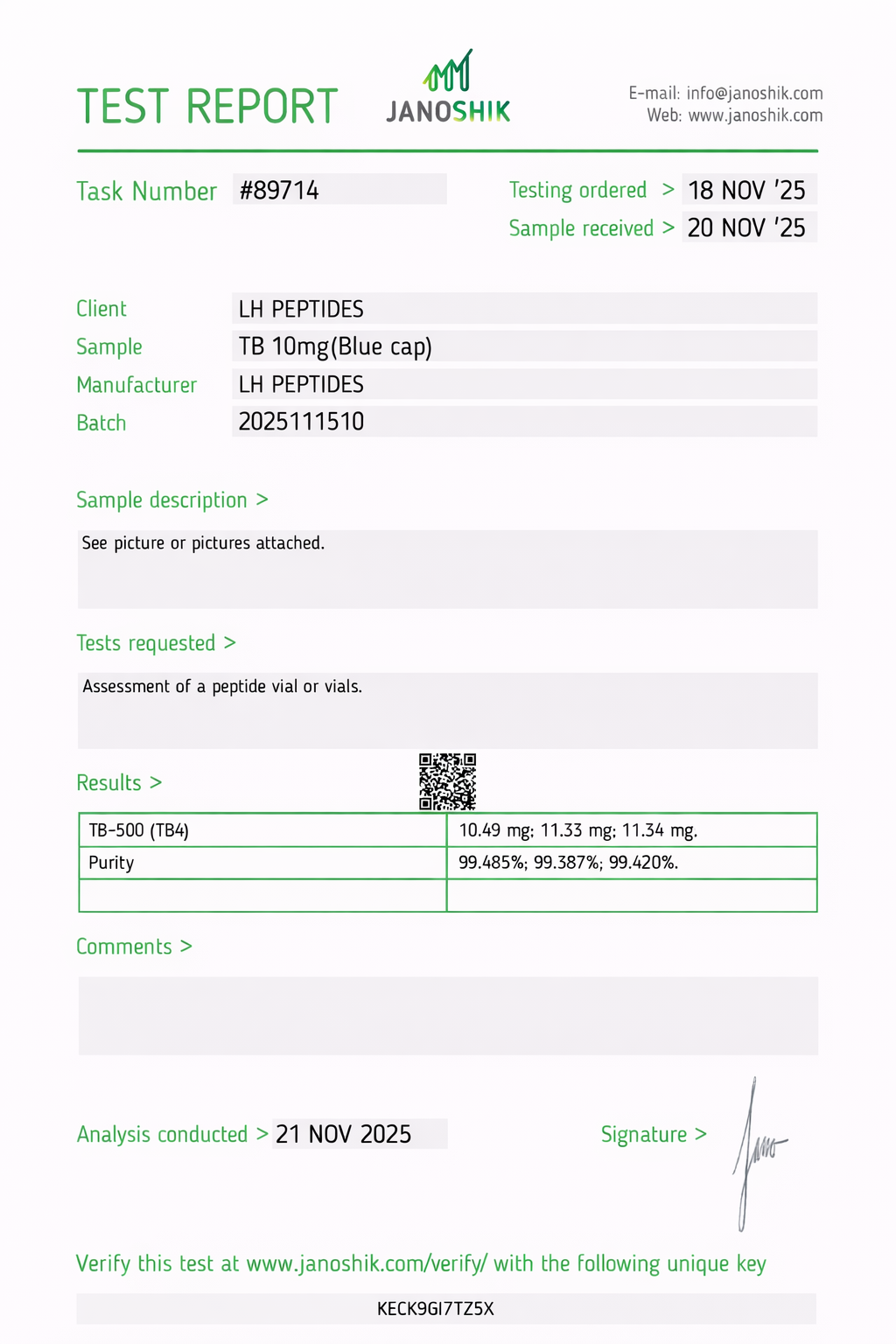 TB-500 is studied for its role in cellular repair pathways and tissue response signaling. Supplied as a lyophilized powder. For research use only.